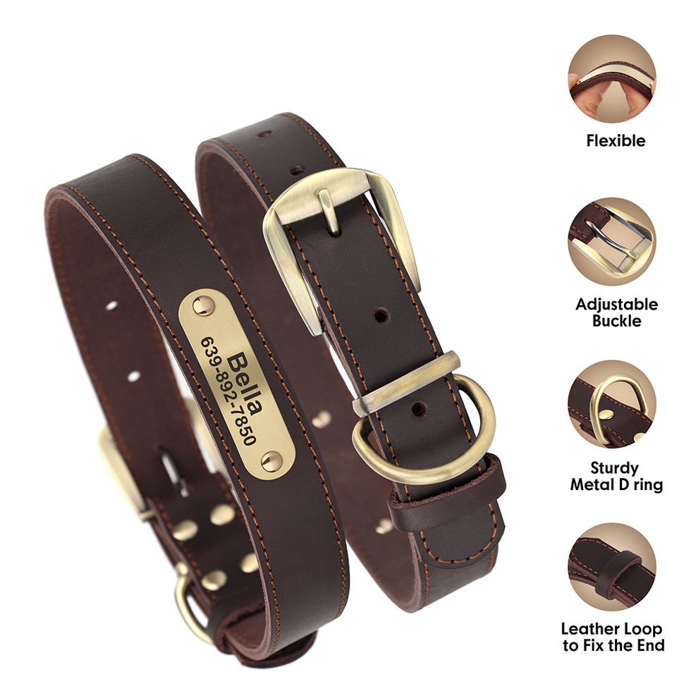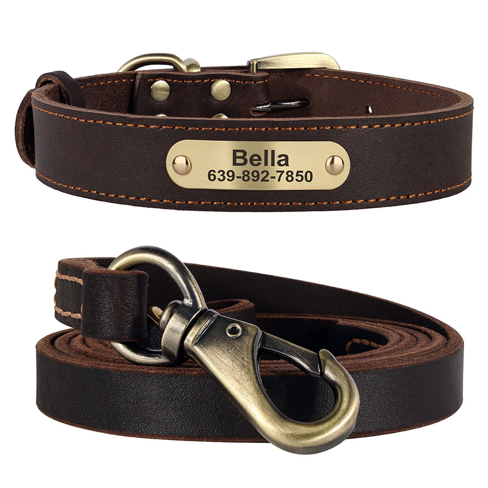 Give your dog a collar and leash set that combines style, durability ad peace of mind. Our personalized leather collar is crafted for dogs who live active lives. Made from high-quality leather with reinforced stitching and durable hardware, this set is built to handle daily walks, outdoor adventures.